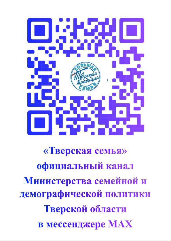 "Тверская семья" официальный канал Министерства семейной и демографической политики Тверской области в мессенджере МАХ